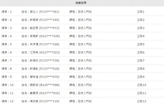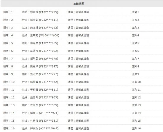 除了 6.益智桌遊趣 7.足球入門班 9趣味排球A 抽籤外,其他有報名都會錄取