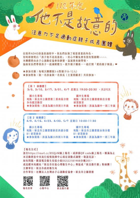 「他不是故意的」ADHD親子成長團體辦理時間: