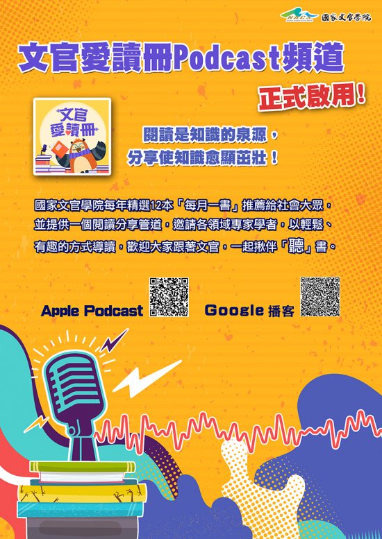 主旨:為擴大公務人員專書閱讀多元學習管道,國家文官學院成立「文官愛讀冊」Podcast頻道,請查照並轉知所屬同仁。