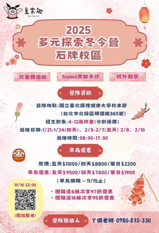一、本校推廣教育中心與童博健康管理工作室合作開辦「2025多元探索冬令營」即日起受理報名。