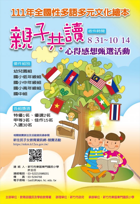 主旨:檢送教育部國民及學前教育署委請新竹市政府辦理「111年度全國性多語多元文化繪本親子共讀心得感想甄選」