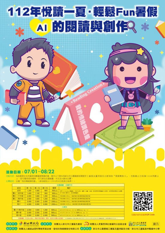 活動名稱:112年悅讀一夏.輕鬆FUN暑假-AI的閱讀與創作。 活動日期:112年7月1日至8月22日。