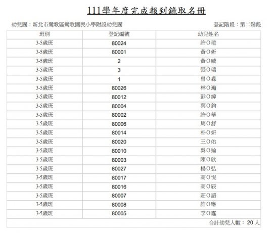 留園直升生1位放棄,故錄取備取1幼生李O霆。