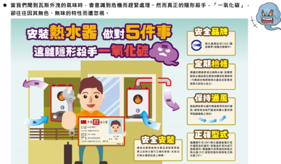 當我們聞到瓦斯外漏的氣味時,會意識到危機而趕緊處理。然而真正的隱形殺手-「一氧化碳」,卻往往會因其具有無色、無味的特性而遭忽視,以致不幸事故層出不窮。如何有效防範一氧化碳中毒,確實遵照「五要」原則,是不二法門。