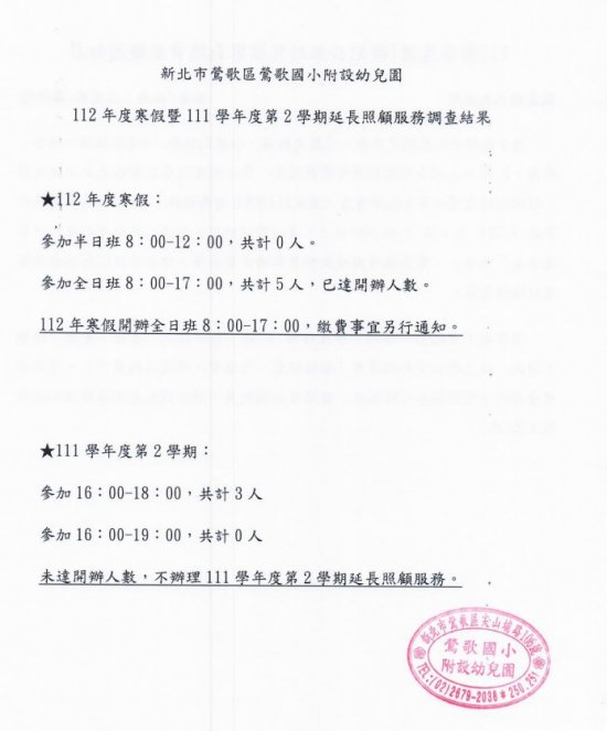 112年寒假參與人數達5人,開辦全日班8:00-17:00,日期為1/30-2/7(含2/4),共8日