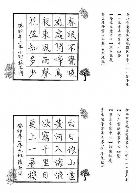 比賽組別:一、低年級組(20字);二、中年級組(28字);三、高年級組(56字)