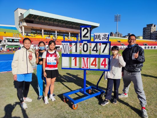 榮獲得女童組跳高第一名,成績1.44公尺,
