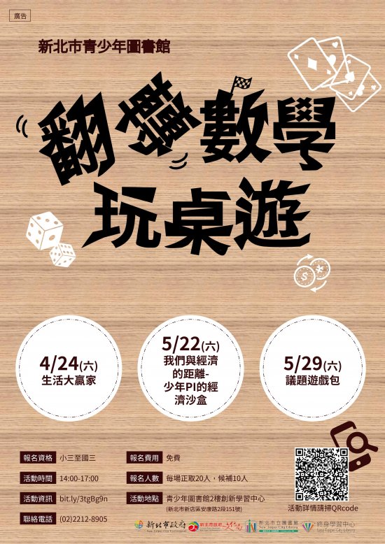 「生活大贏家」桌遊營:4月24日(六)14:00-17:00。