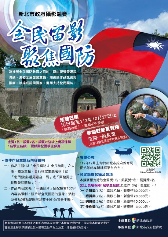 一、旨揭競賽活動係為推展全民國防教育之目的,藉由視覺表達與溝通,激發全民愛國意識,期透過作品甄選與推廣,以達成認同國家,進而支持全民國防。
