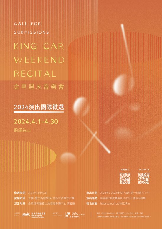 一、本會自2016年開始舉辦「金車週末音樂會」,旨在「讓音符代替語言,用樂曲展開交流」。藉由開放音樂展演空間,激勵表演團體發揮所學,展現音樂技能、提升自信以及累積舞台經驗,同時讓民眾在繁忙的生活中,透過音樂的洗禮,珍惜日常裡的美好時光。