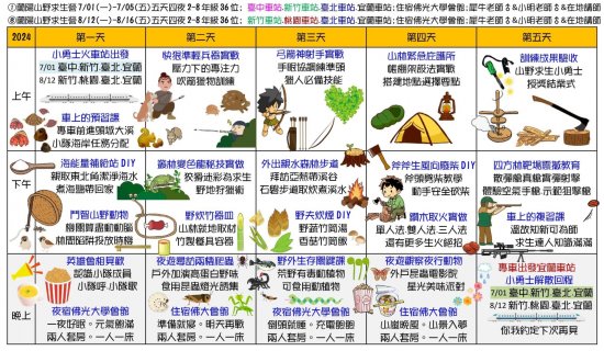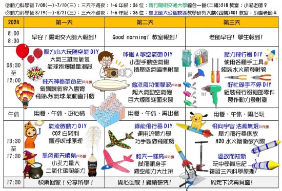 二、招生年齡:暑假前大班~九年級 請依不同營隊分齡參加。