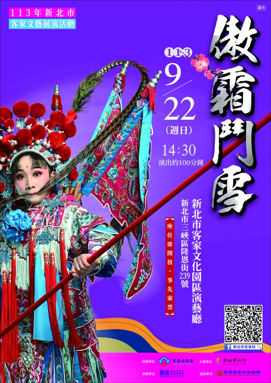 2、演出地點:新北市客家文化園區演藝廳(地址:新北市三峽區隆恩街239號)。