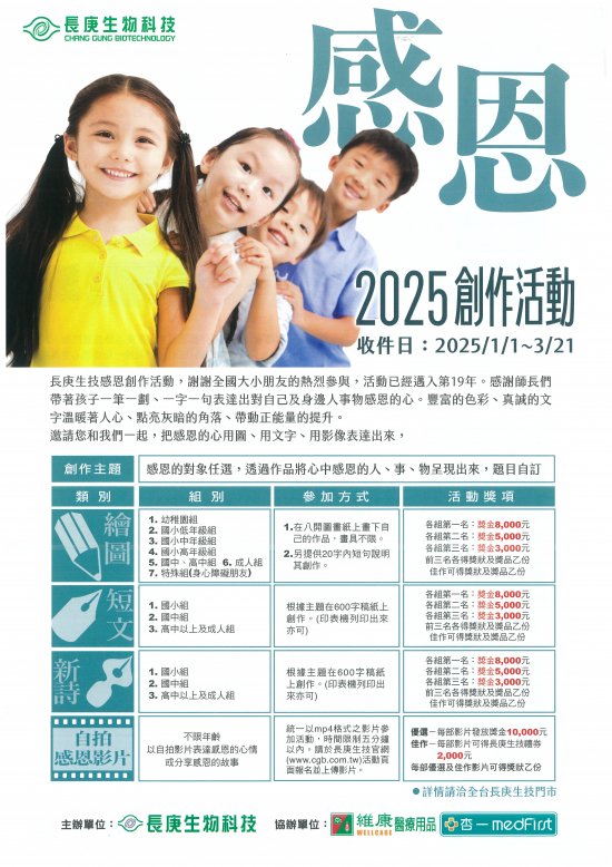 長庚生技感恩創作活動(繪畫、短文、新詩、自拍感恩影片),詳如附件。