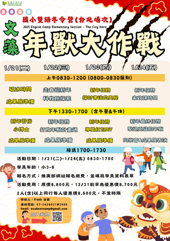 2025國小雙語冬令營「年獸大作戰」、 「STREAM-小小職涯冒險王」與「STREAM-建築夢想家」,敬請踴躍參加。