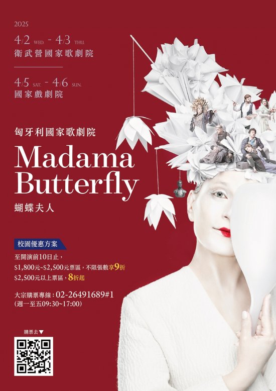 聯合數位文創股份有限公司訂於114年4月2日(週三)起至114年4月6日(週日)分別於台北國家戲劇院及高雄衛武營國家歌劇院舉辦匈牙利國家歌劇院《蝴蝶夫人》、《天鵝湖》,敬請踴躍參與。詳如附件。