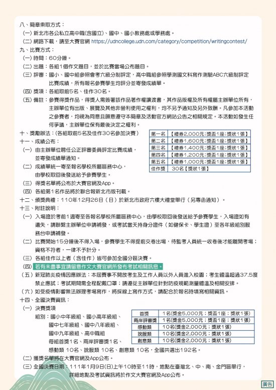 簡章索取方式: 大賽官網下載   http://udncollege.udn.com/category/competition/