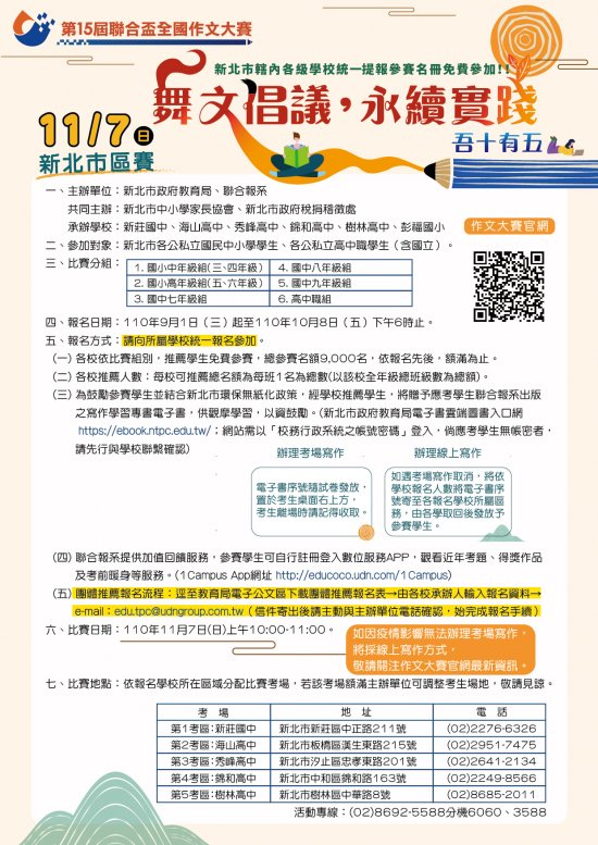五、貴校完成推薦報名後,請逕將報名表統一寄至電子信箱:edu.tpc@udngroup.com.tw,並主動來電確認,即完成報名手續。