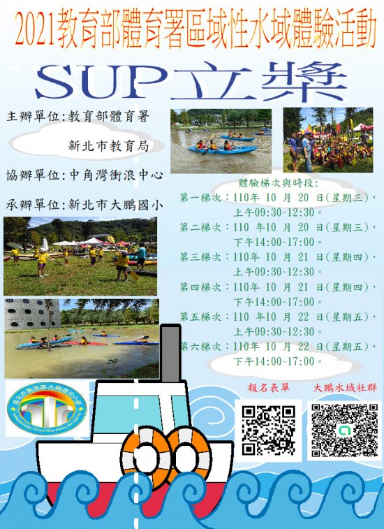 五、報名方式:報名請掃描簡章QRCode或至google表單連結(網址:https://forms.gle/CRWwKcXfweTbp8Zu7),本校將於收到表單後,確認報名回信,報名成功後,請加入大鵬水域運動應用程式LINE群組。