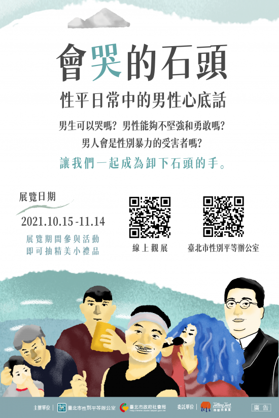 主旨:檢送臺北市政府辦理「會哭的石頭:性平日常中的男性心底話」線上特展之新聞稿及文宣各1份,請貴校轉知教職員工生活動資訊,請查照。